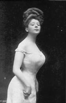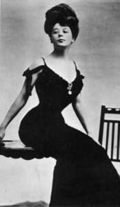 setzte sie sich, aufgrund ihres Korsetts kerzengerade, auf einem Mahagoni-